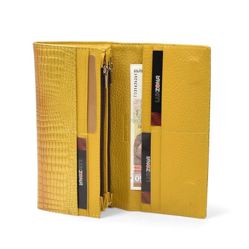 Лачено портмоне от естествена кожа кроко ефект с много отделения жълто Код L-501-1-3