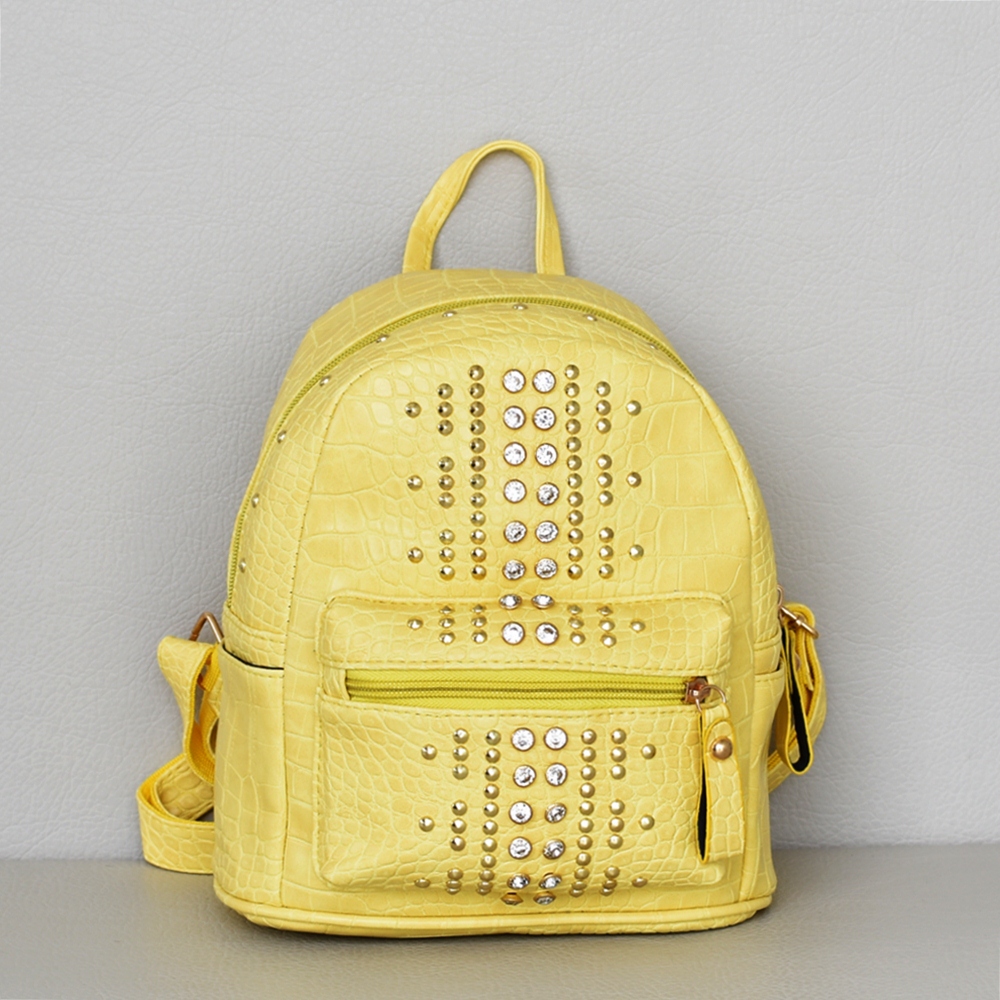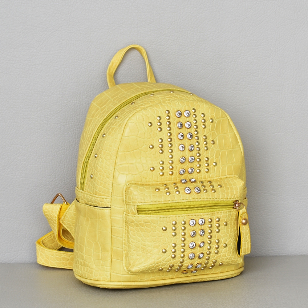 Дамска раница с капси и камъни, кроко ефект, жълта Код NK140011