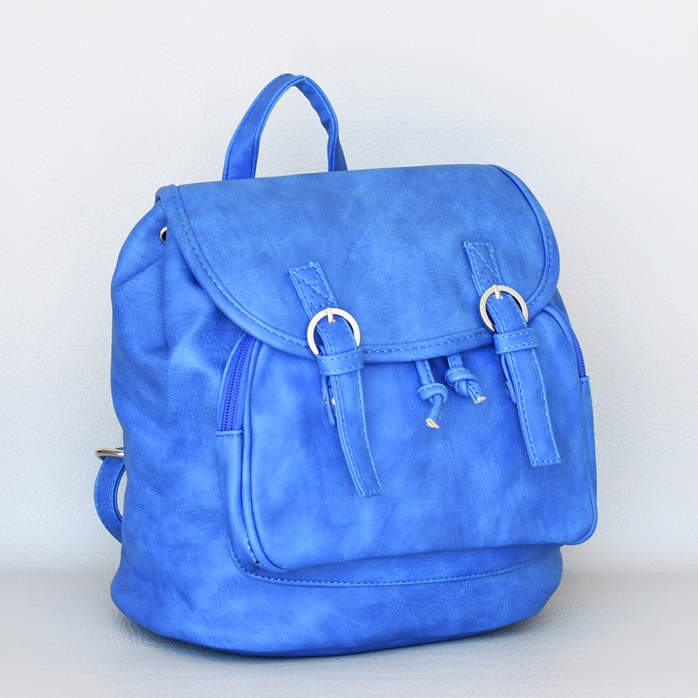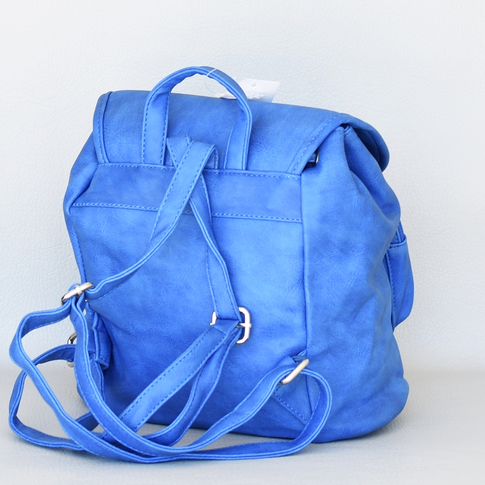 Дамска раница от еко кожа синя с капак, преден джоб и декоративни метални катарами Код BR1200521