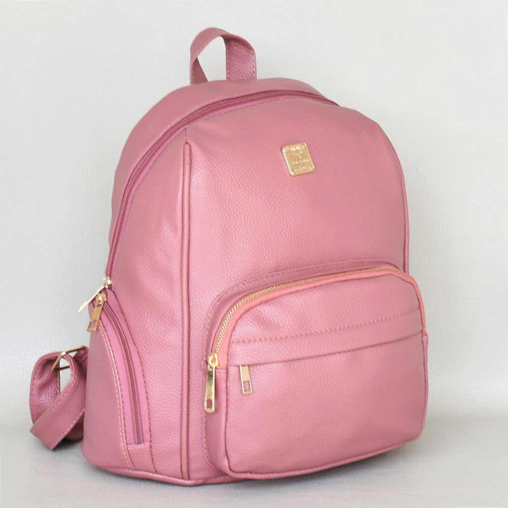 Дамска кожена раница с много външни джобчета с цип, пепел от рози Код BR12301969