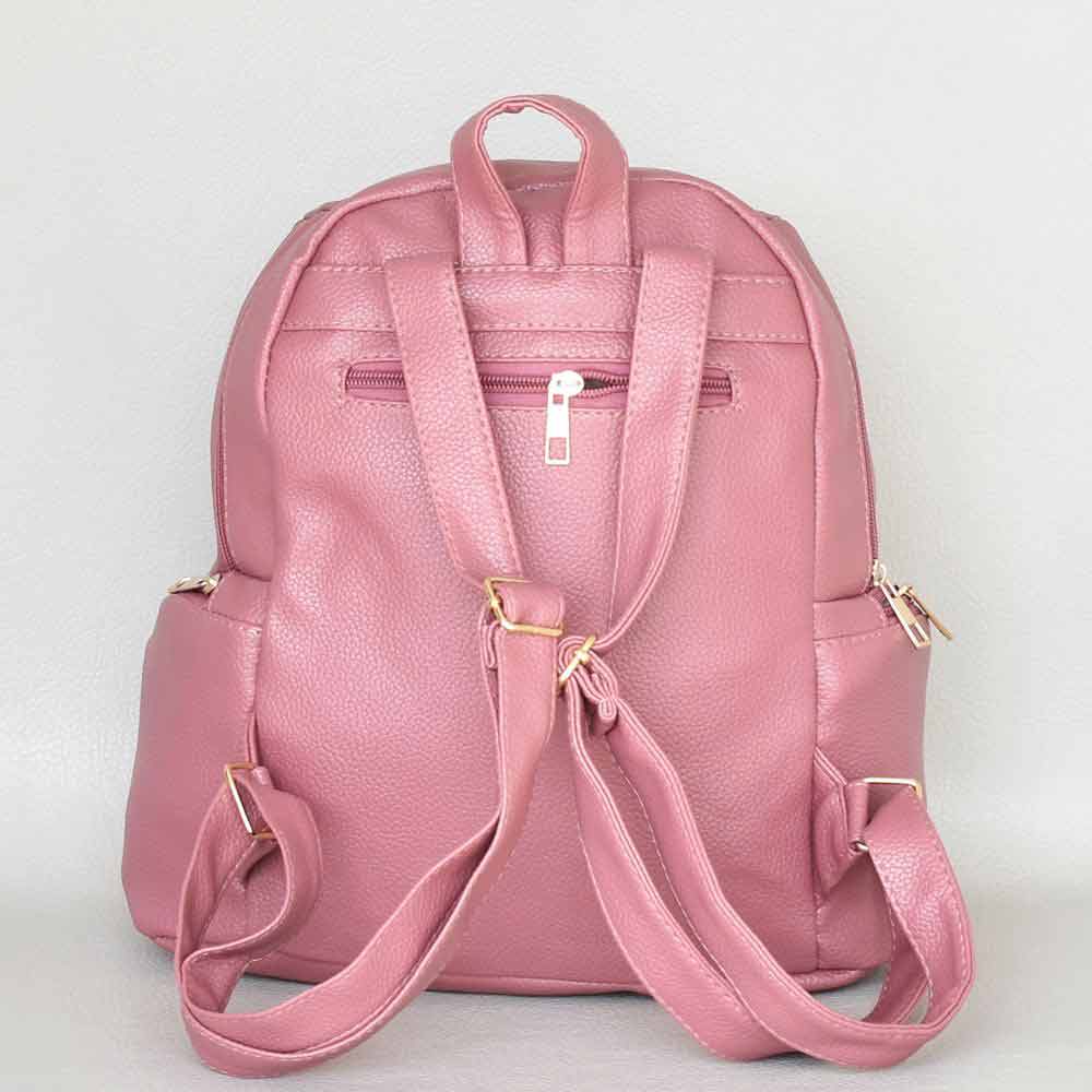 Дамска раница от еко кожа голяма, с едно основно отделение с вътрешен джоб, два предни, два странични и един заден джоб с цип, златен обков, цвят-пепел от рози.