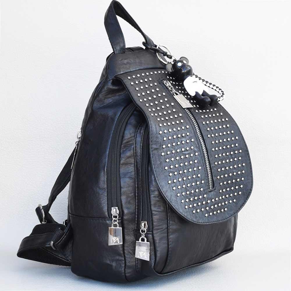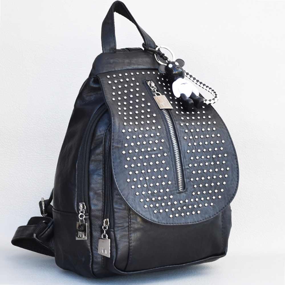 Дамска раница от еко кожа с високо качество, капак с капси и декоративен цип и ефектна висулкаДамска раница от еко кожа с високо качество, капак с капси и декоративен цип и ефектна висулкаdsc_0039_83612367