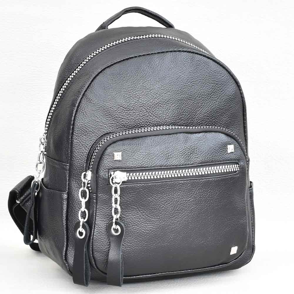 Дамска раница от еко кожа с удобен преден джоб, черна Код M490-1