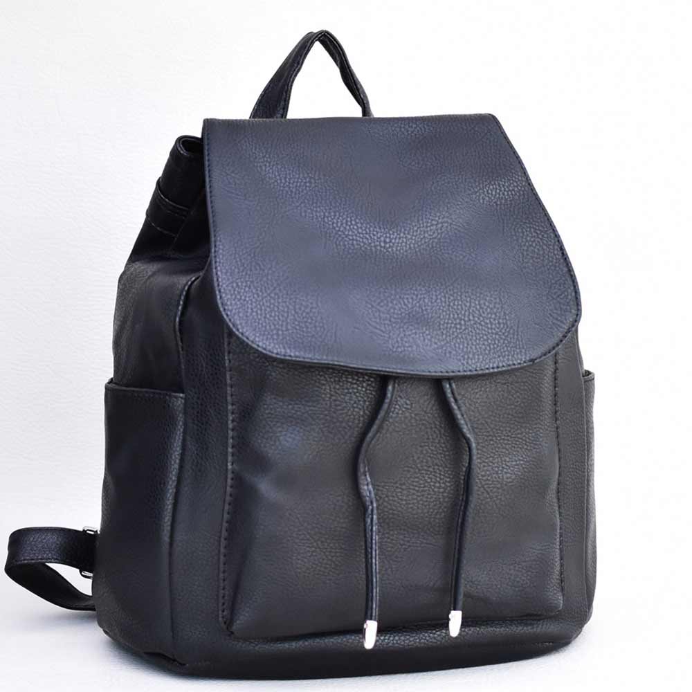 Голяма дамска раница от еко кожа с капак, черна Код SH5029-3