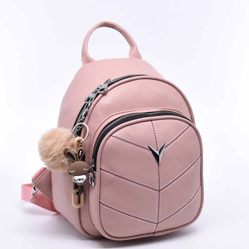 Дамска раница от еко кожа голяма с ефектна висулка спортно-елегантен модел пудра Код GL-090-6