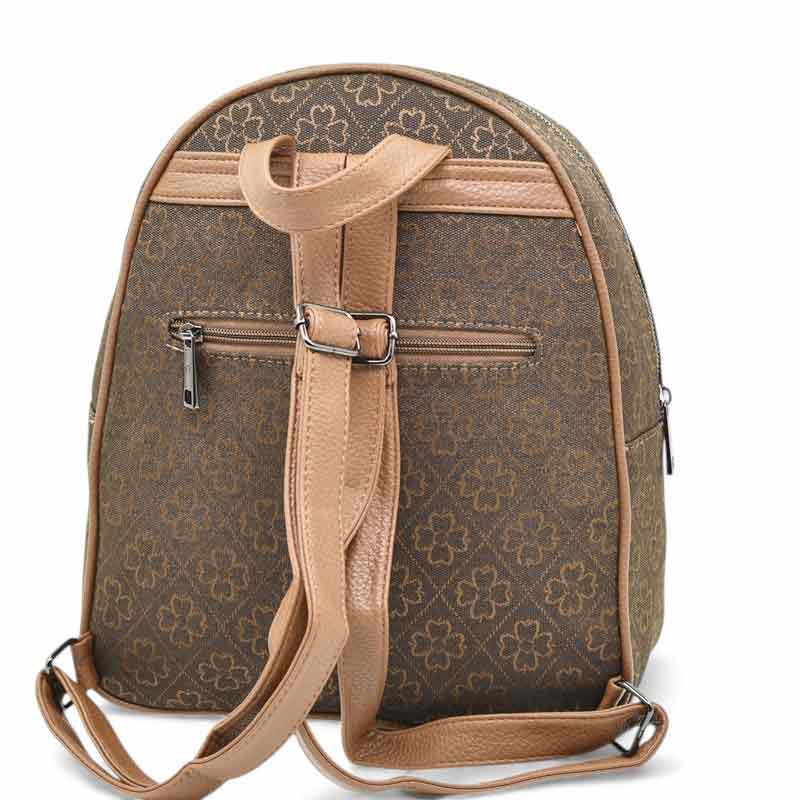 Дамска раница от здрав плат с много отделения топ модел кафява Код F-202522-4