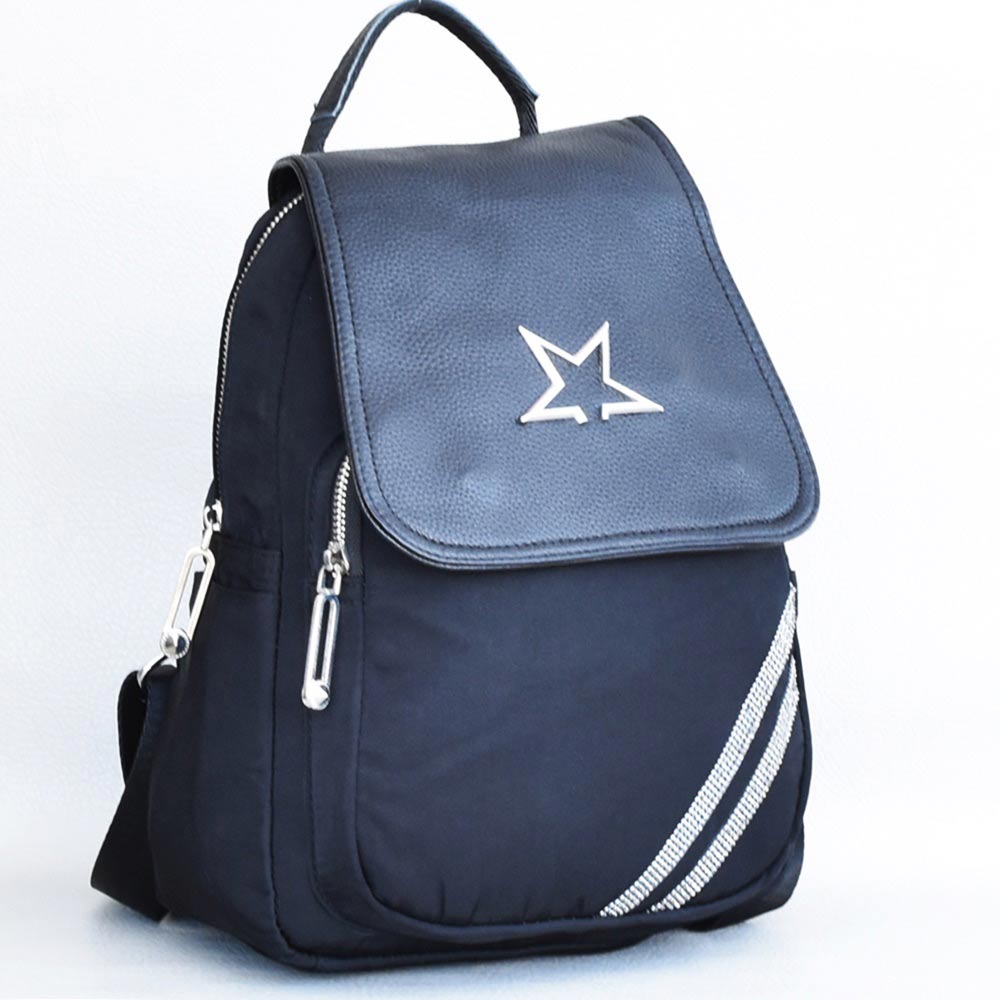 Дамска раница от плат и еко кожа с капак, декориран със звезда Код EK-060