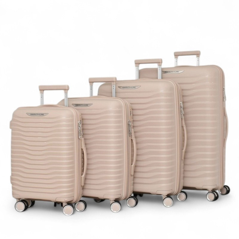 Куфари комплект с 4 колелца и разширителен цип изчистен модел бежов Код GR-1616-3