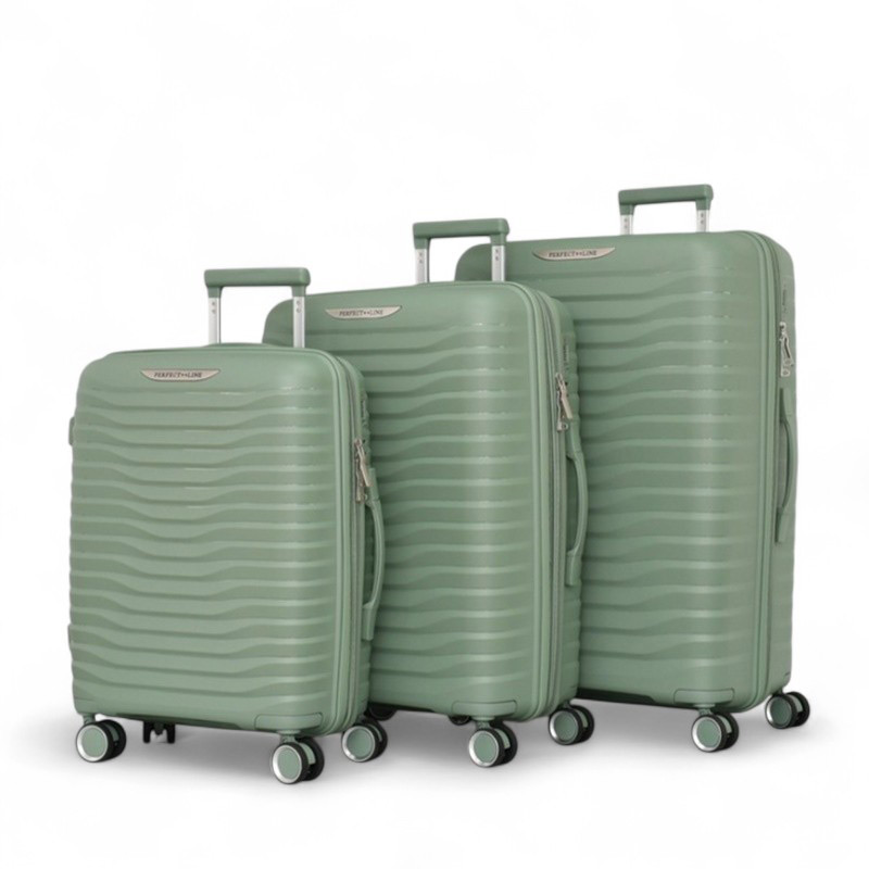 Комплект куфари с 4 колелца и разширителен цип изчистен модел зелен Код GR-1616-01
