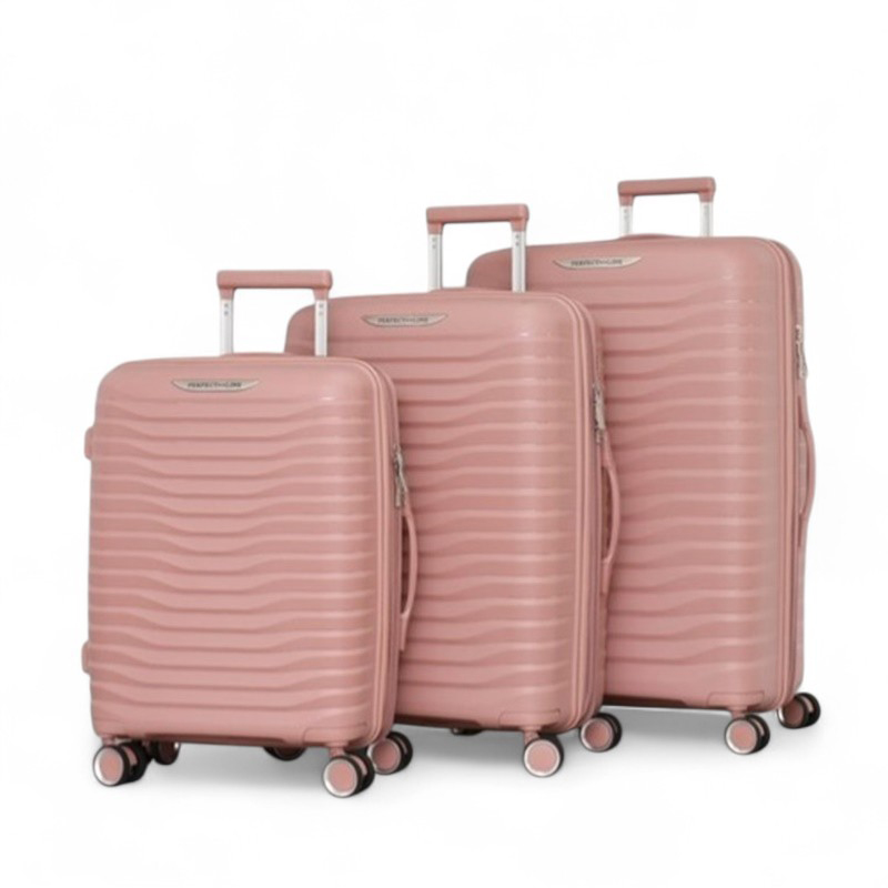 Комплект куфари с 4 колелца и разширителен цип изчистен модел розов Код GR-1616-05