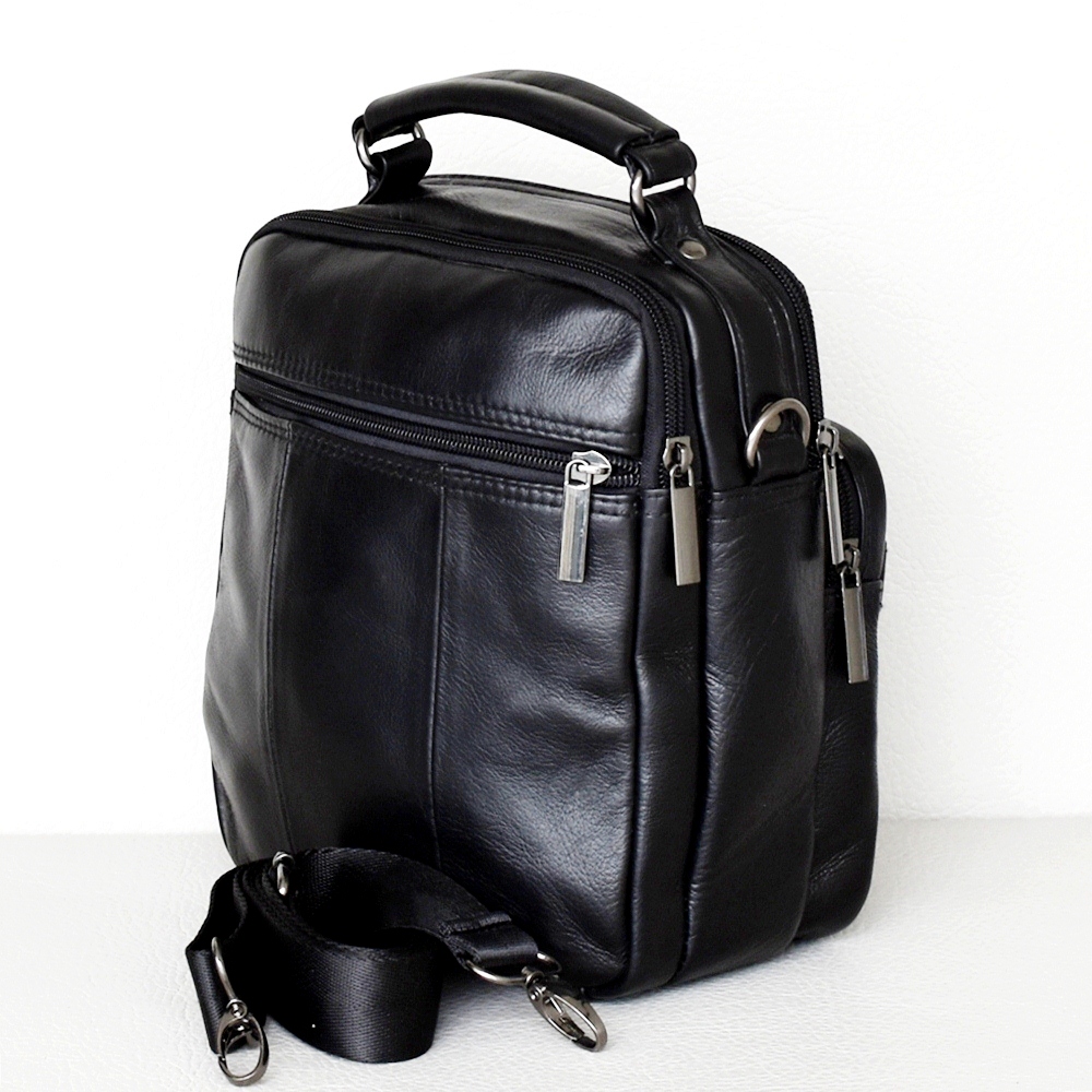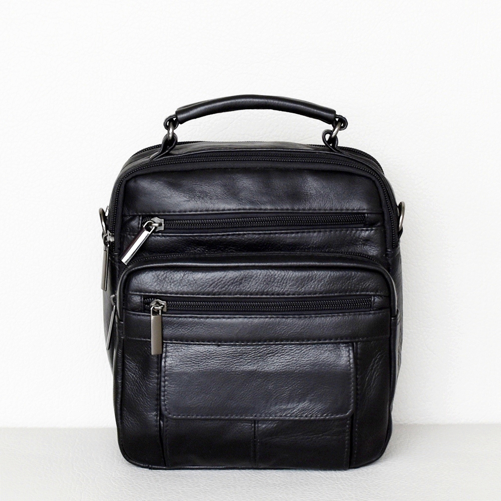 Мъжка чанта от естествена телешка кожа за носене в ръка и през рамо черна
