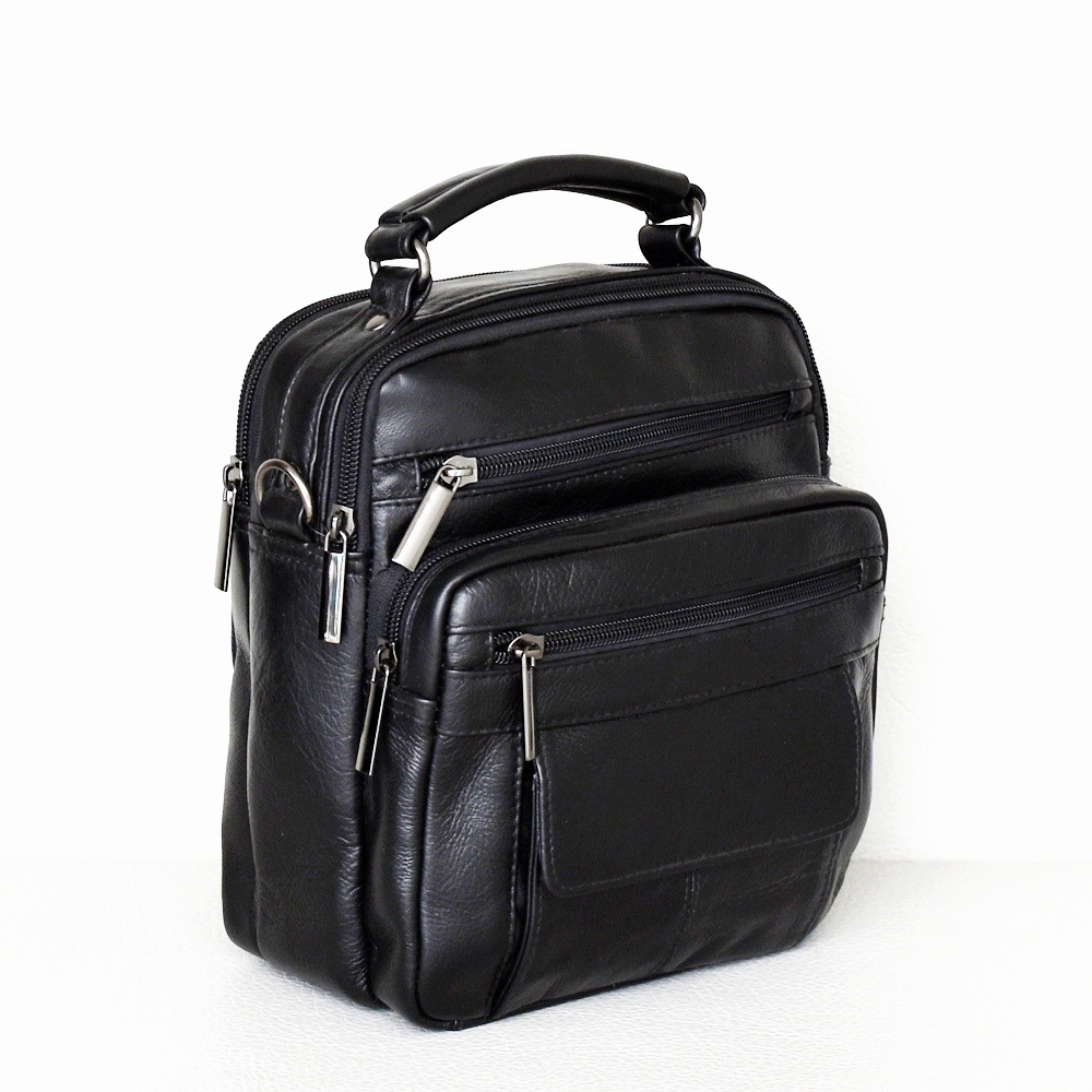 Мъжка чанта от естествена телешка кожа за носене в ръка и през рамо черна Код GL-005