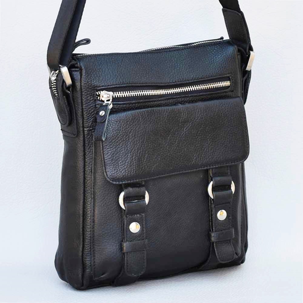 Спортно-елегантна мъжка чанта от естествена телешка лицева кожа с дълга дръжка