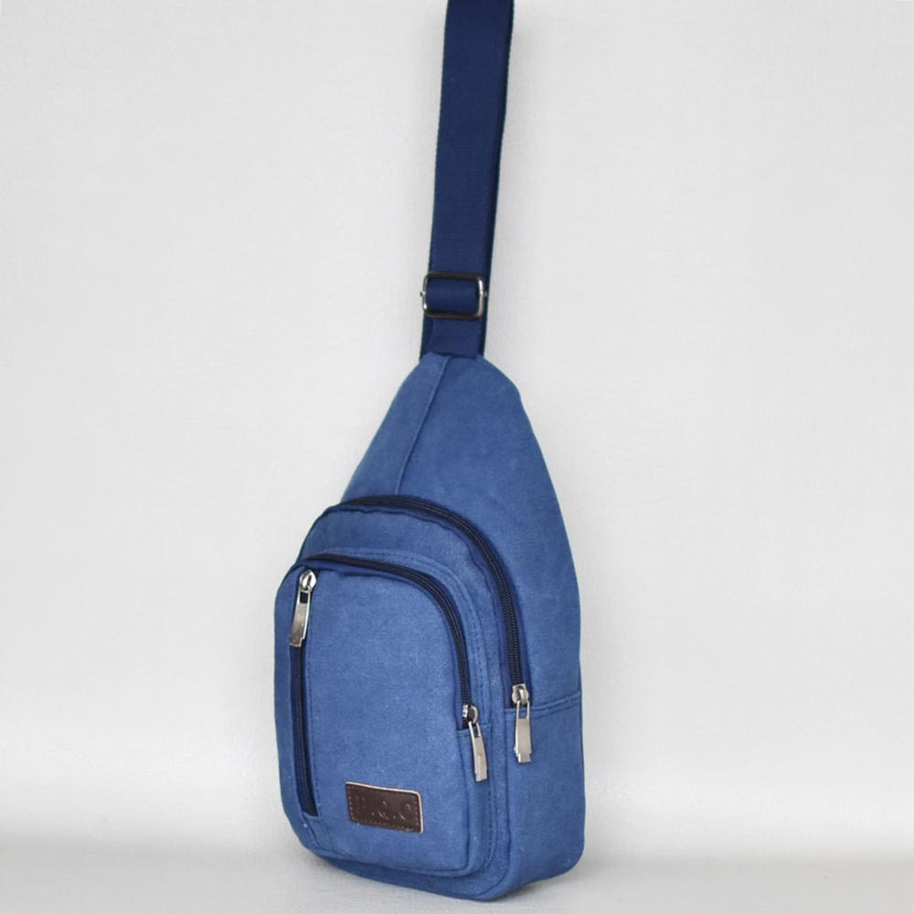 Мъжка чанта-раница от брезентов плат, за през гърди, гръб или рамо, синя Код GR1202022