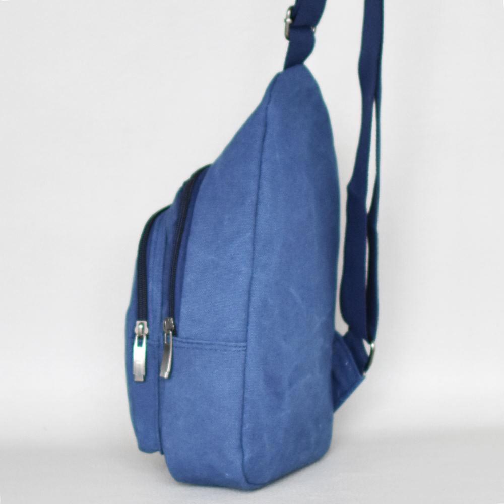 Мъжка чанта-раница от брезентов плат, за през гърди, гръб или рамо, синя