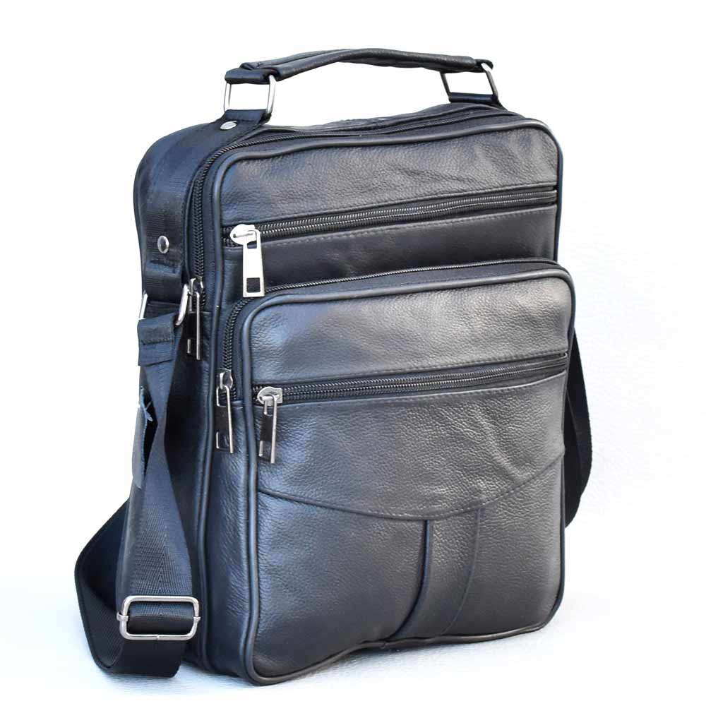 Мъжка чанта от естествена кожа, голяма, височина 27 см, черна Код GL2918-1