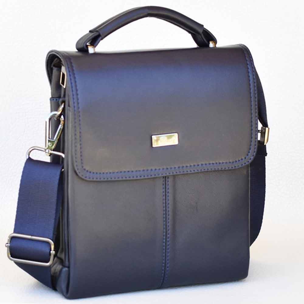 Мъжка чанта от естествена телешка кожа, спортно-елегантен модел, височина 23 см, синя Код H20029