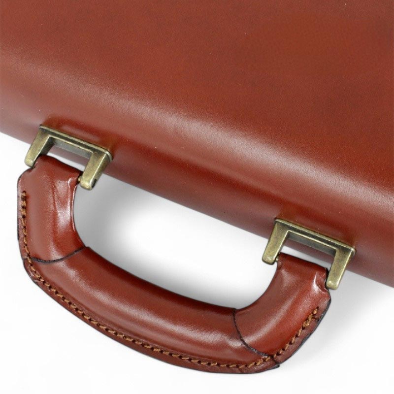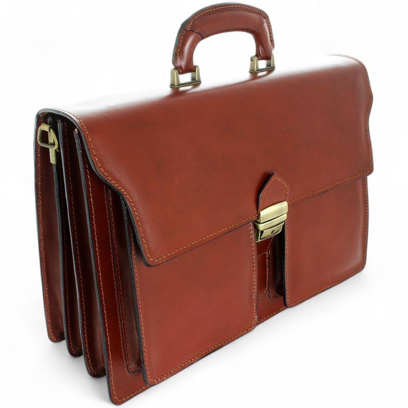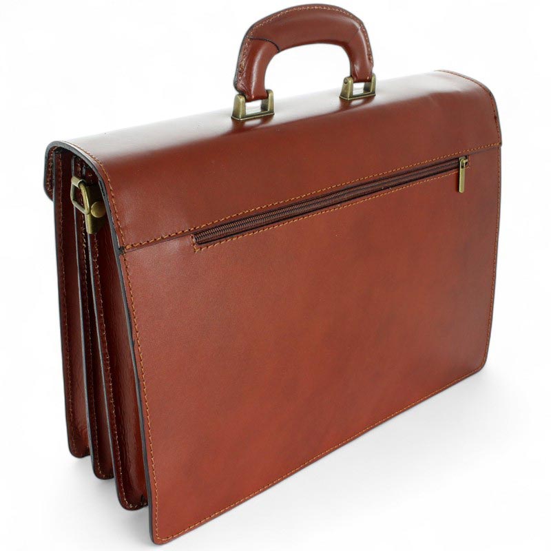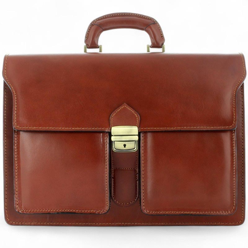 Бизнес чанта от естествена телешка кожа с капак и два предни джоба светло кафява Код D001