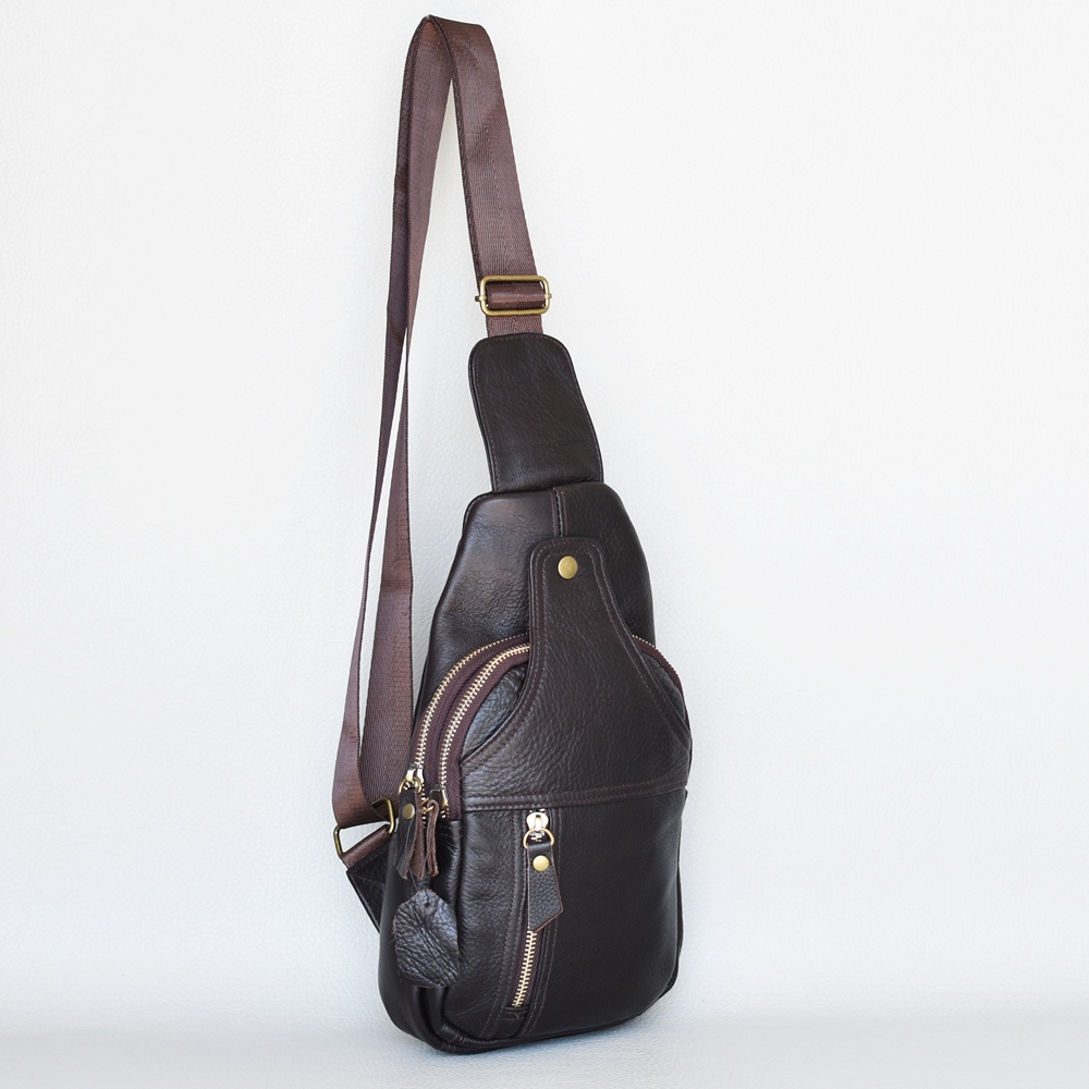 Мъжка чанта раница кафява от естествена кожа телешки бокс за през гърди, рамо или гръб