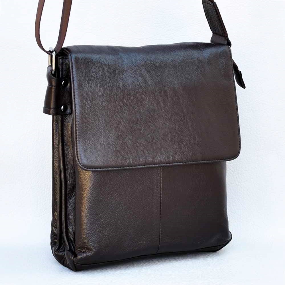 Мъжка чанта от лицева телешка кожа за през рамо с много отделения кафява Код GL-0604-02