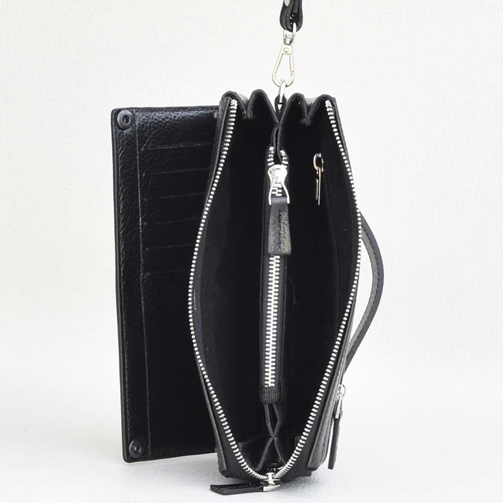 Мъжка чанта борсета от телешка кожа с високо качество за носене в ръка, две основни отделения и едно с цип, вътрешен джоб с цип, заден джоб с цип и външна страница за карти и документи с тик-так закопчаване.