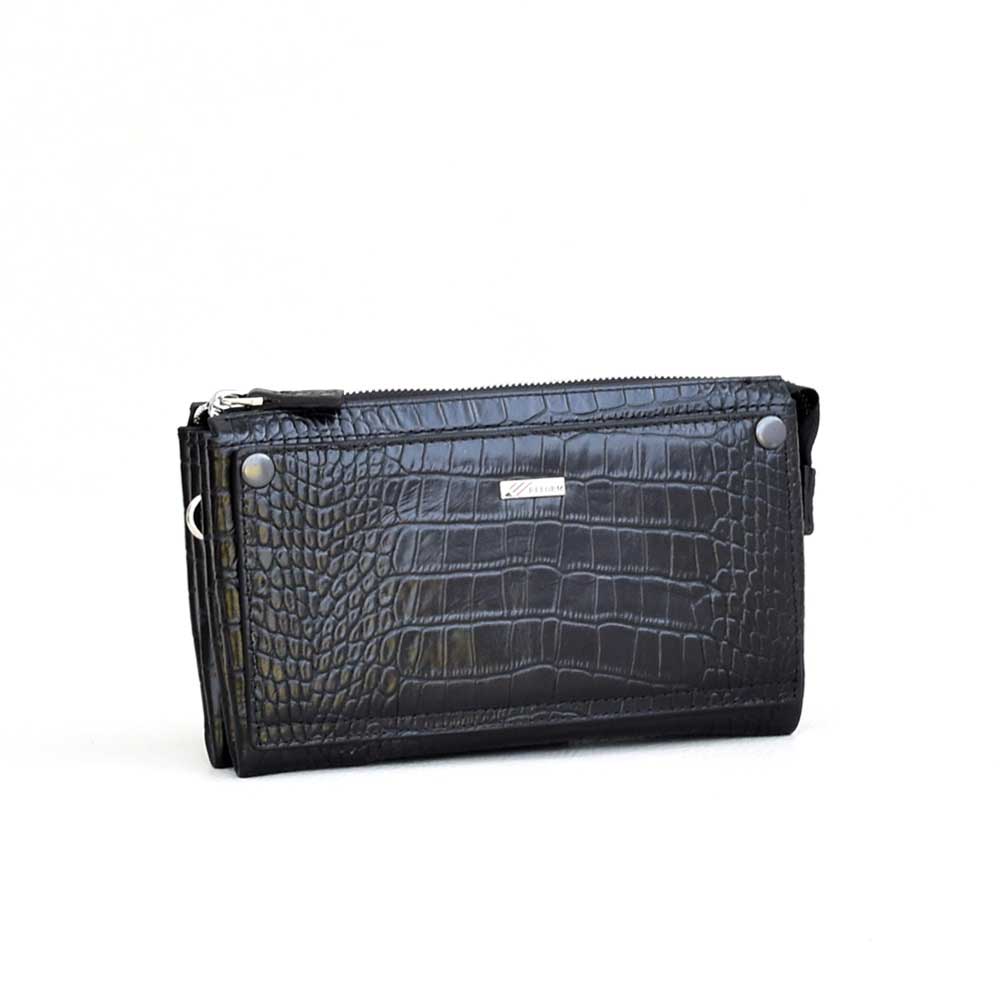 Мъжка чанта от естествена телешка кожа тип борсета REFORM, с кроко ефект, луксозен модел, черна Код J1971-3