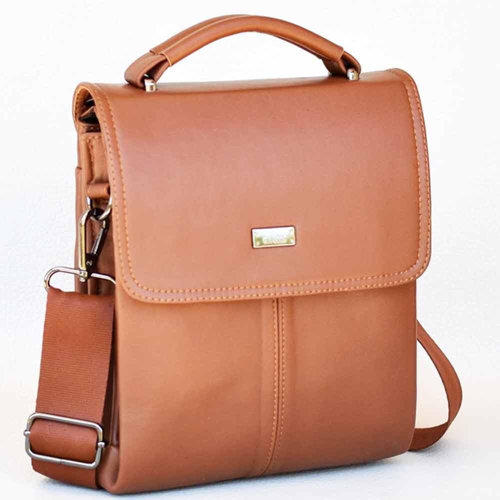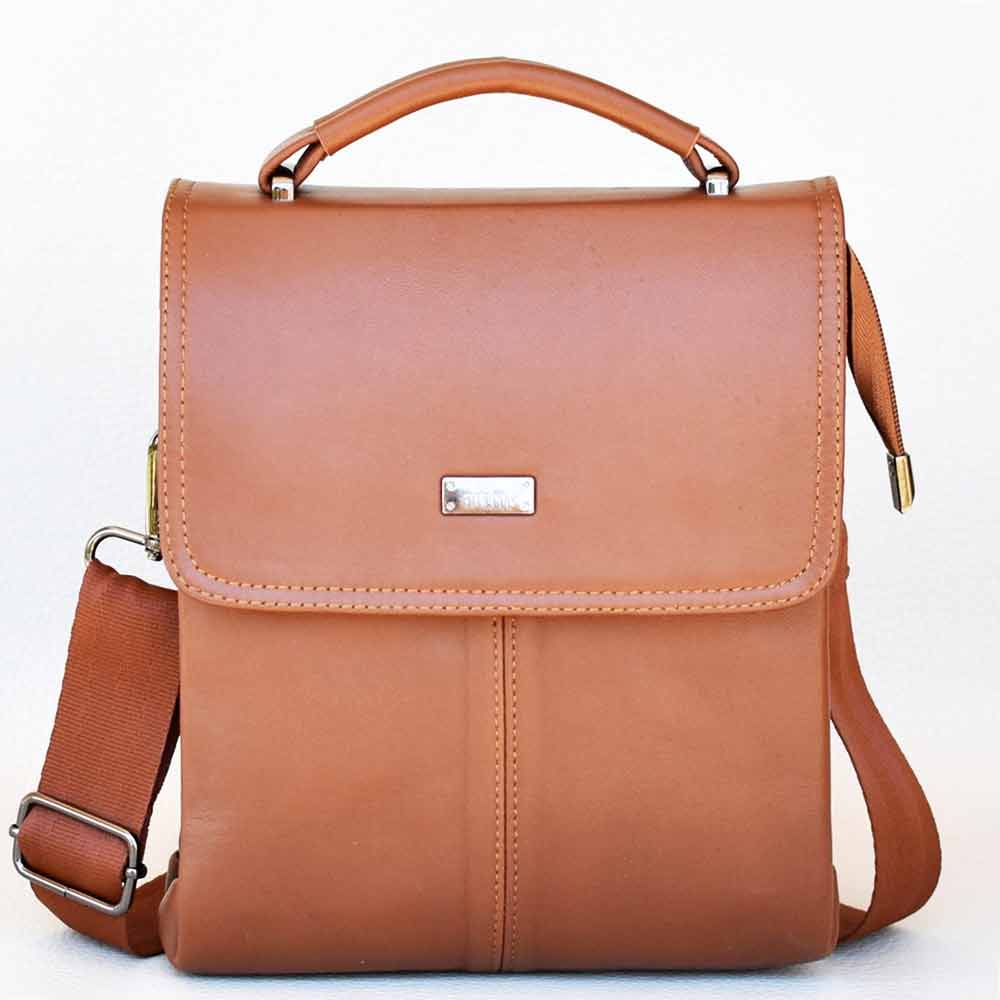 Стилна мъжка чанта от естествена телешка кожа с едно основно отделение с три прегради, вътрешен джоб за телефон. Мъжката чанта е с капак с магнитни копчета, джоб  под капака и заден джоб с цип. Чантата е с дълга, регулираща се дръжка за носене през рамо и удобна дръжка за носене в ръка.