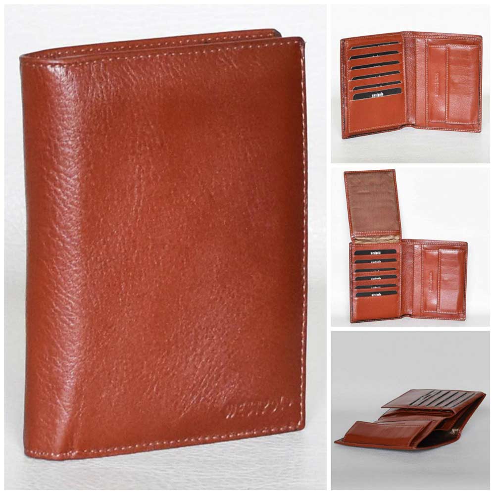 Голям мъжки портфейл от естествена кожа с много отделения за карти, светло кафяв Код N711-25