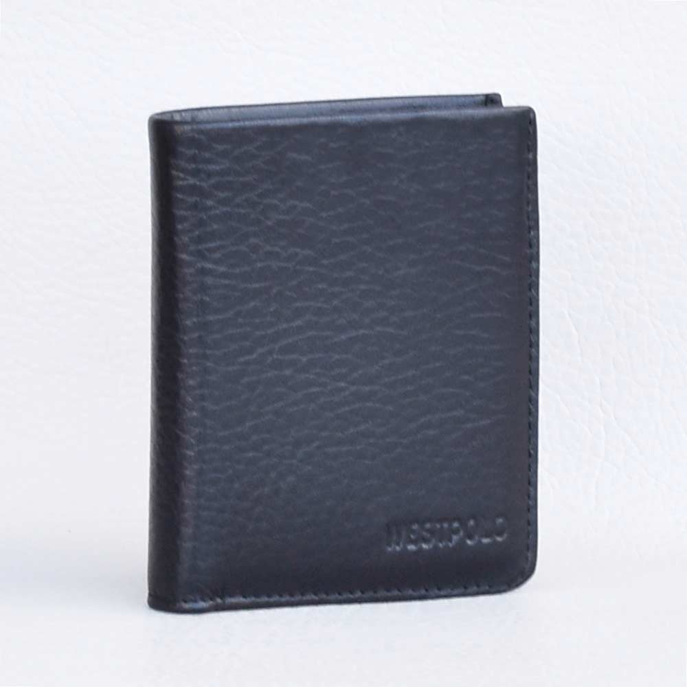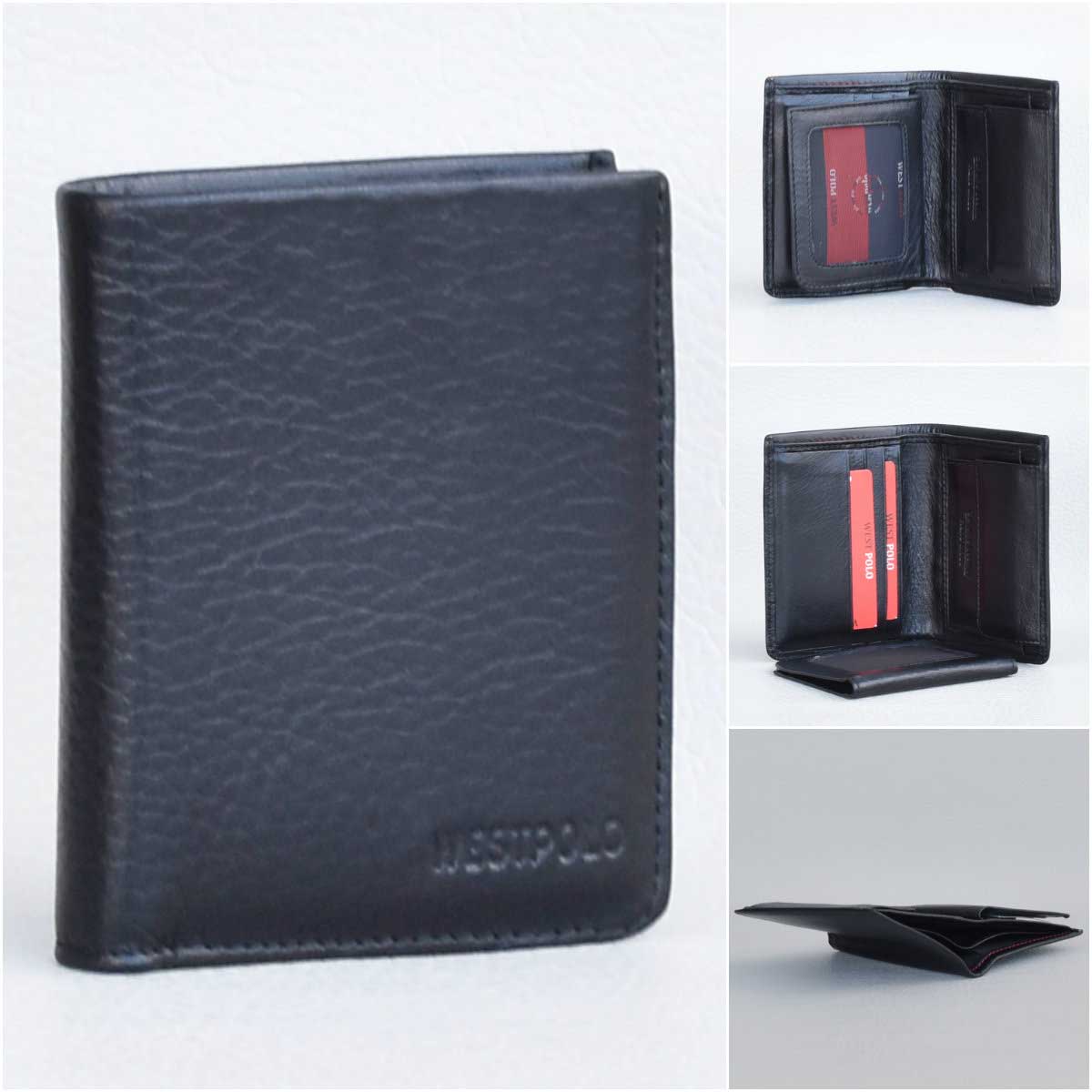 Стилен мъжки портфейл от естествена кожа, вертикален, без закопчаване, с монетник, вадещ се органайзер за карти, много отделения за банкови карти, документи и снимки, две отделения за банкноти. Портфейлът ще получите в кутия, подходяща за подарък.