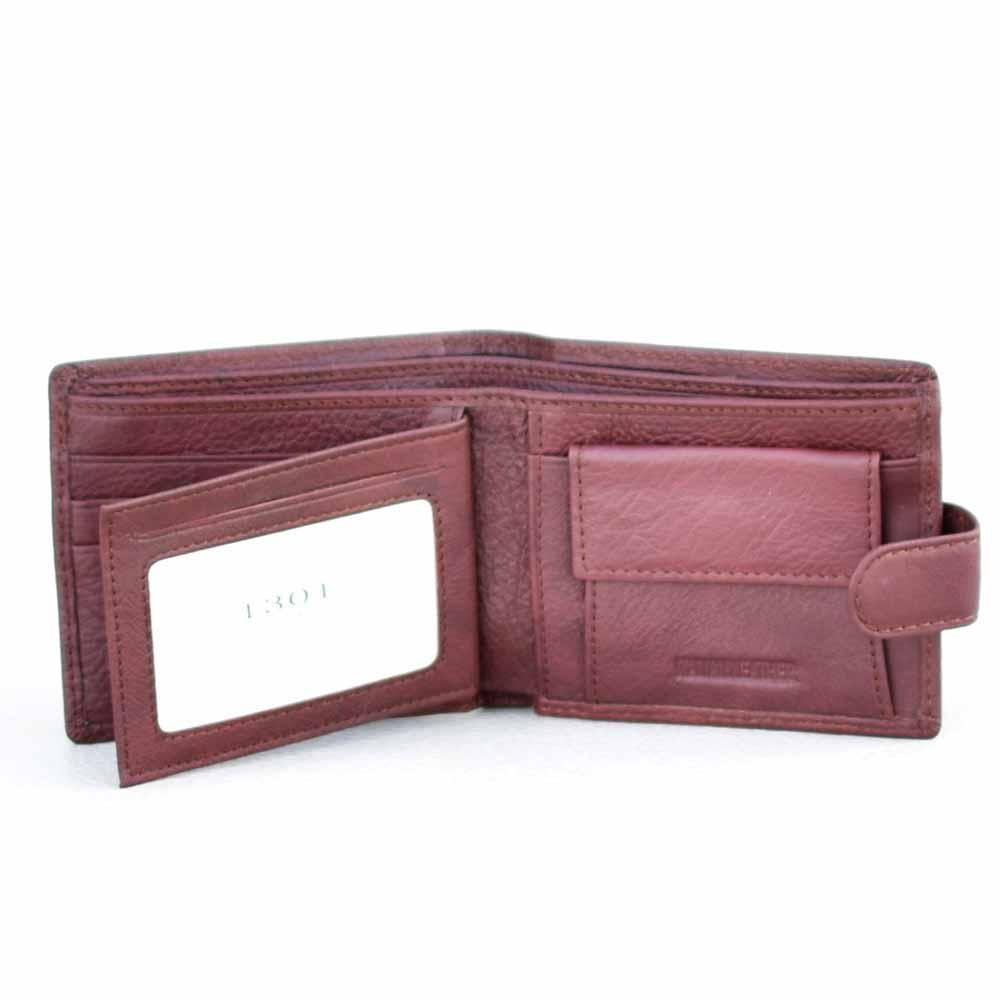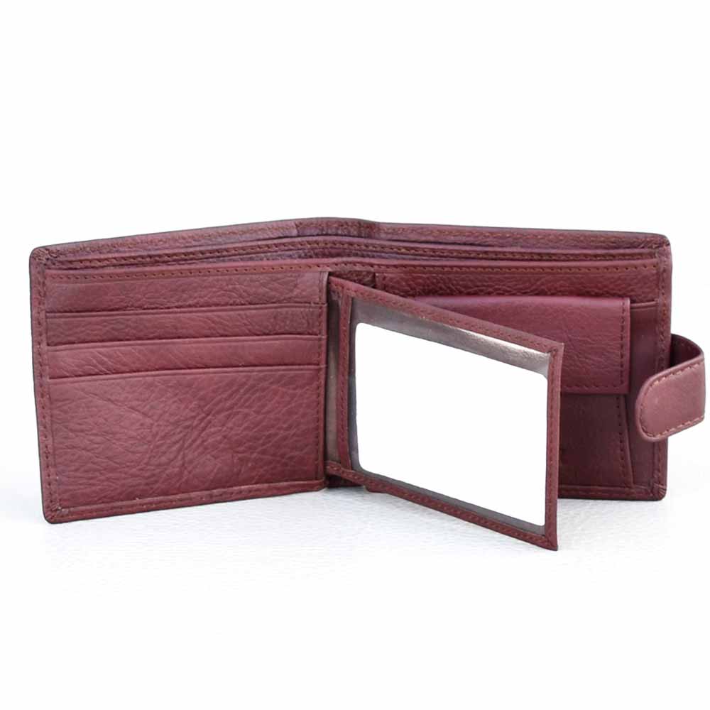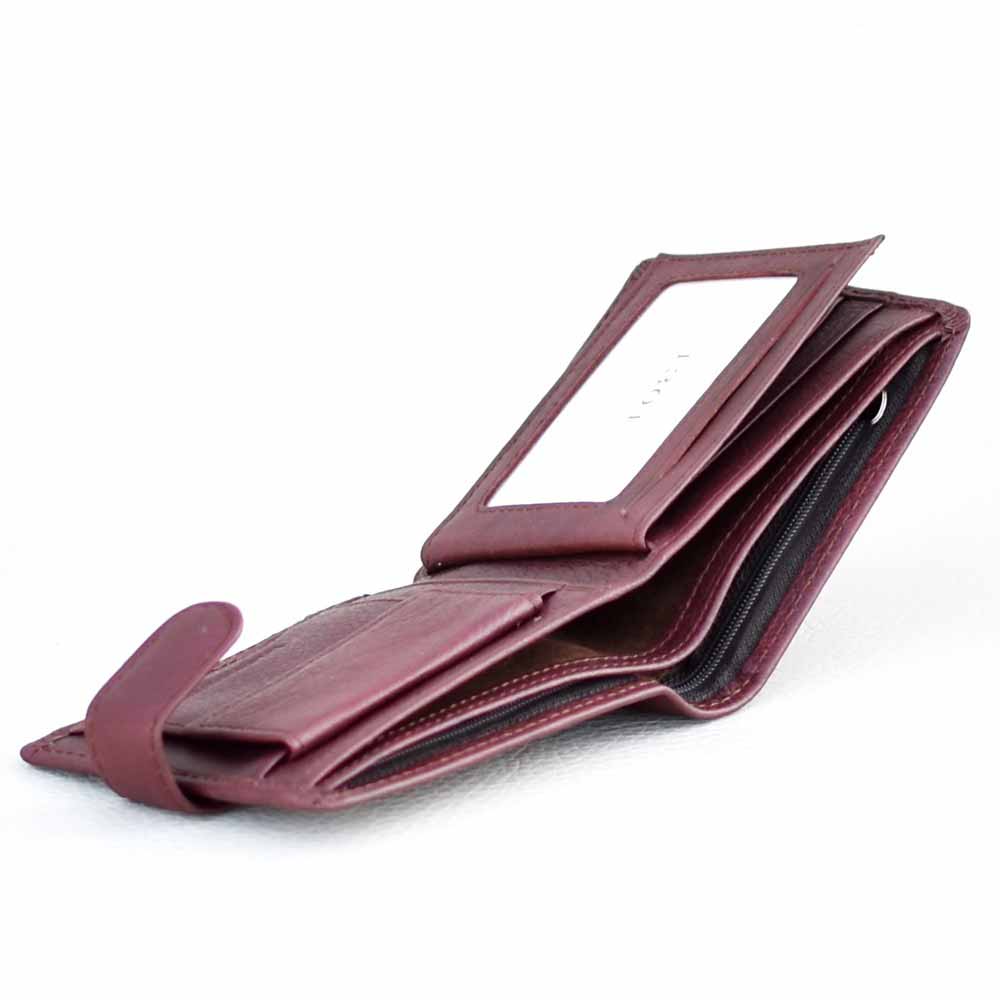 Мъжки портфейл от естествена кожа със закопчаване, хоризонтален, бордо Код MG1301