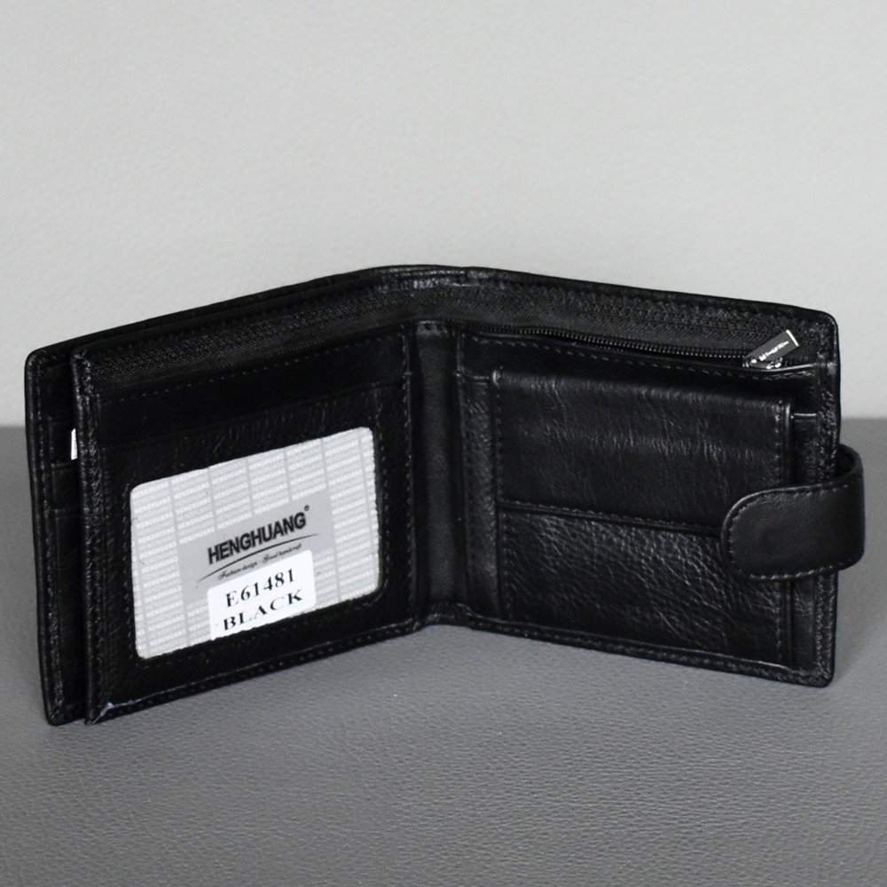 Мъжки портфейл от естествена кожа със закопчаване, отделения за карти черен Код MG-005