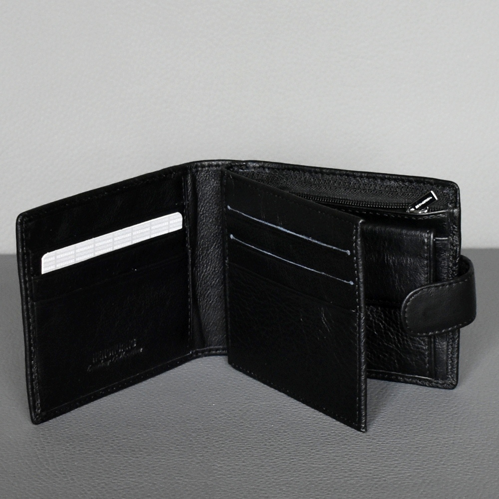 Мъжки портфейл от естествена кожа със закопчаване, отделения за карти черенМъжки портфейл от естествена кожа със закопчаване, отделения за карти черенМъжки портфейл от естествена кожа със закопчаване, отделения за карти черен