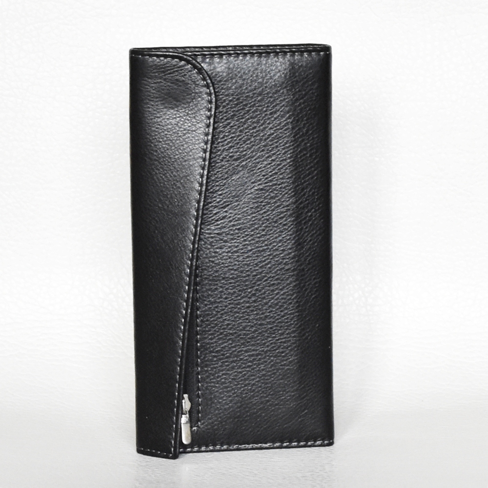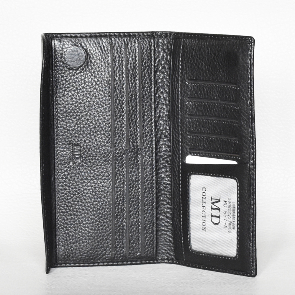 Черен бизнес портфейл от естествена кожа с магнитно закопчаване, много отделения за карти и документи, външен монетник.