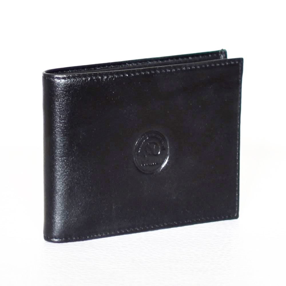 Мъжки портфейл от естествена кожа без закопчаване и без монетник, с две отделения за банкноти, 8 джоба за карти или документи и две странични джобчета.