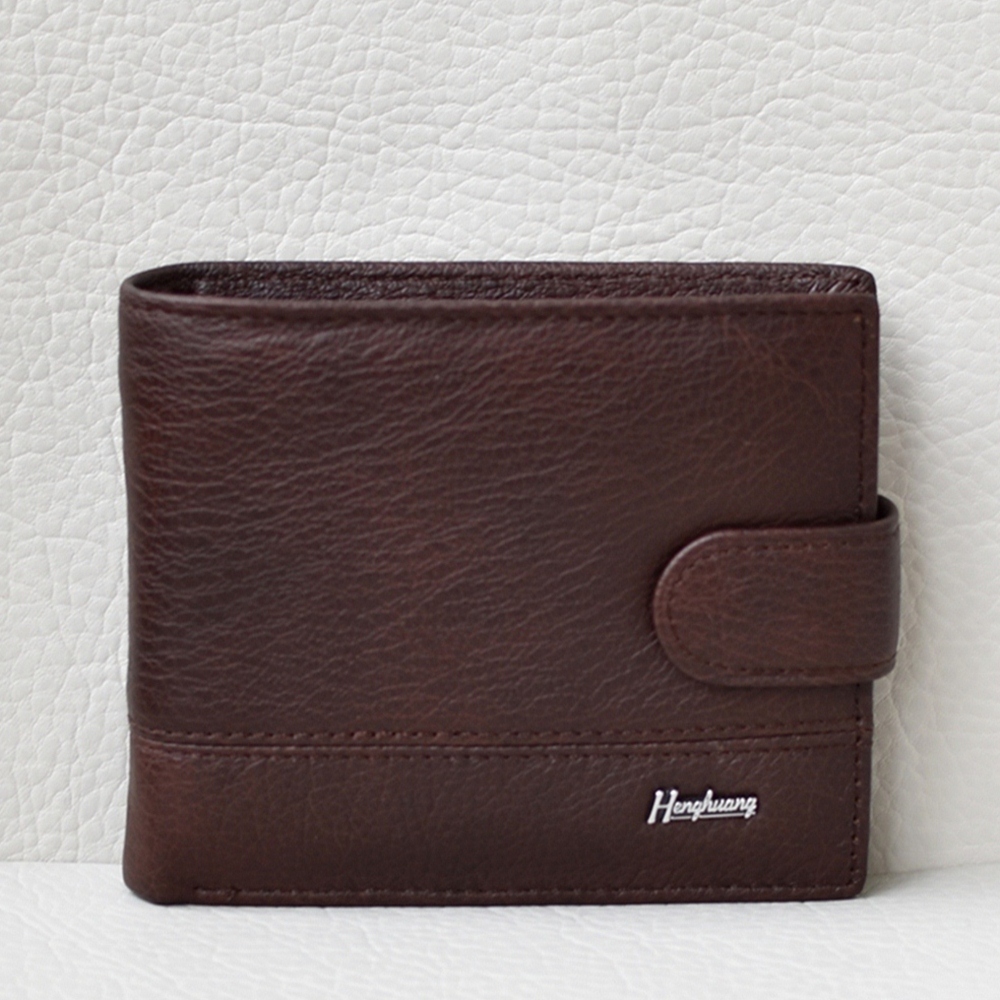 Евтин мъжки портфейл от естествена кожа с отделение за карти и закопчаване Код MG-0052