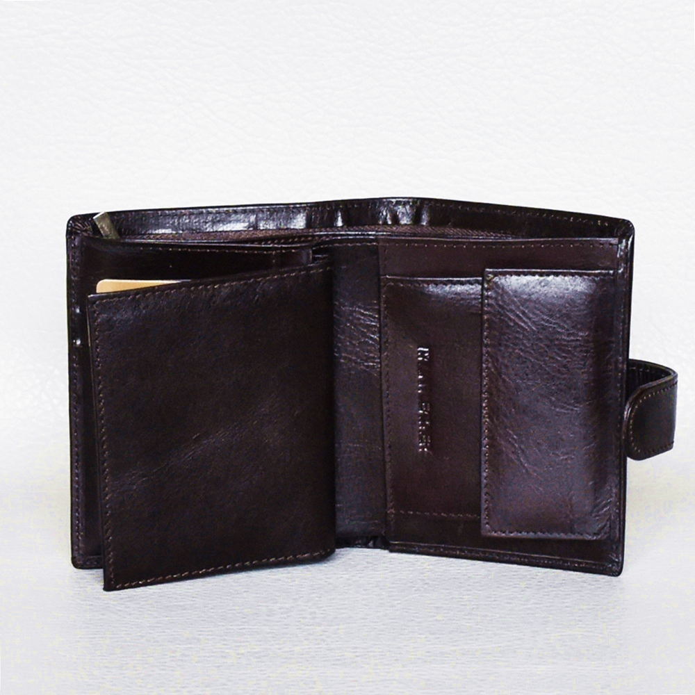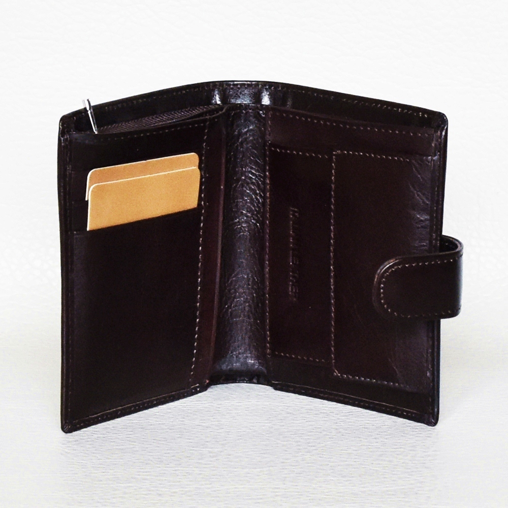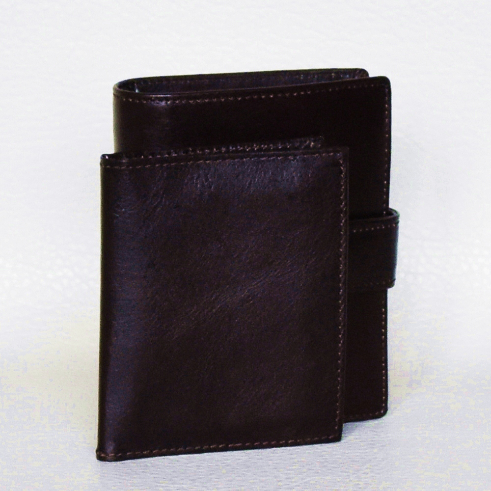 Мъжки портфейл от естествена кожа 2 в 1 с вадеща се страница за карти и документи, със закопчаване и вътрешен монетник, цвят-кафе.