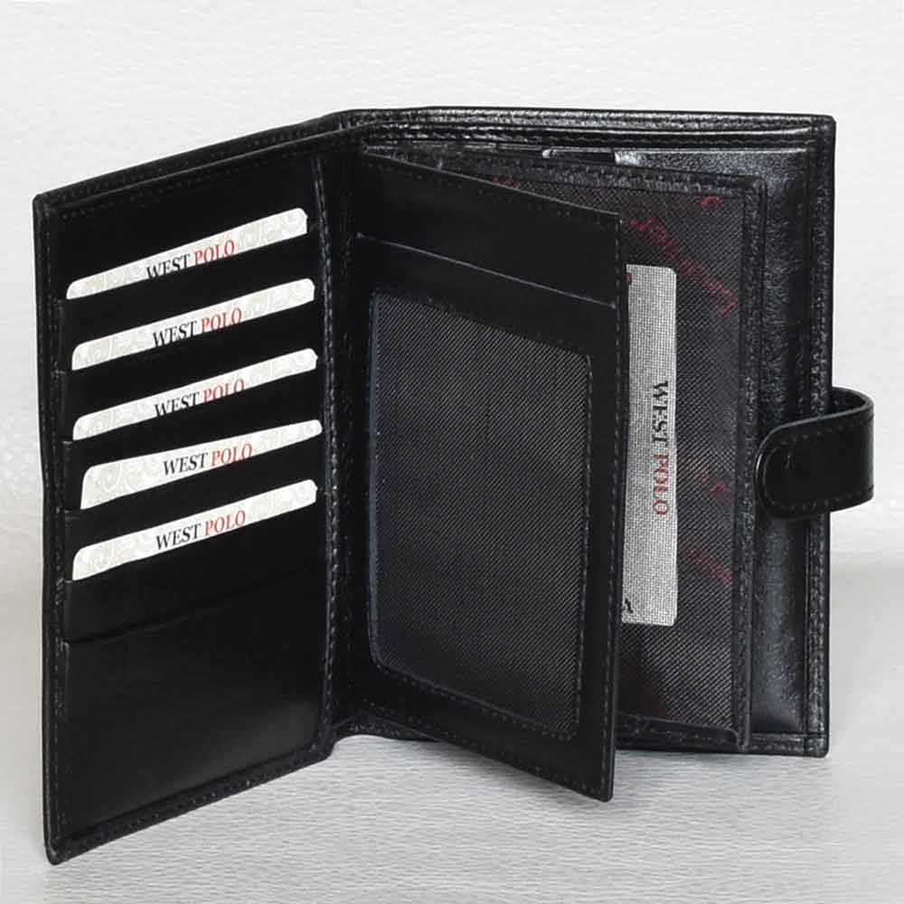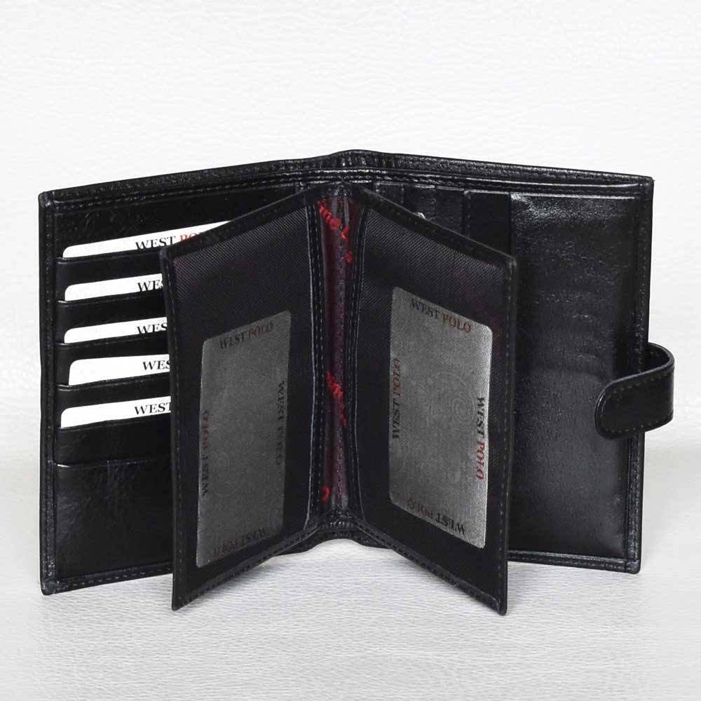 Голям мъжки портфейл от естествена кожа с много отделения за карти, черен Код N611-15