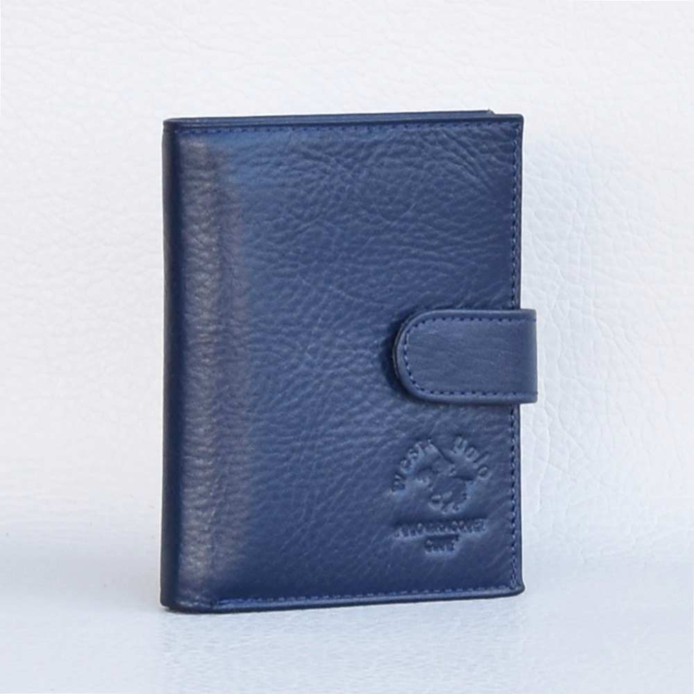 Класически модел мъжки портфейл от естествена кожа, вертикален, със закопчаване, вътрешен монетник с тик-так копче, допълнителна страница с отделения за карти и документи, две отделения за банкноти. Портфейлът ще получите в кутия, подходяща за подарък.