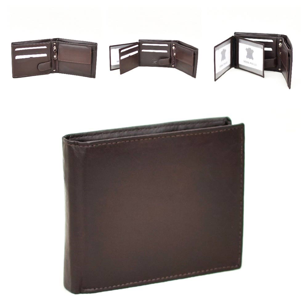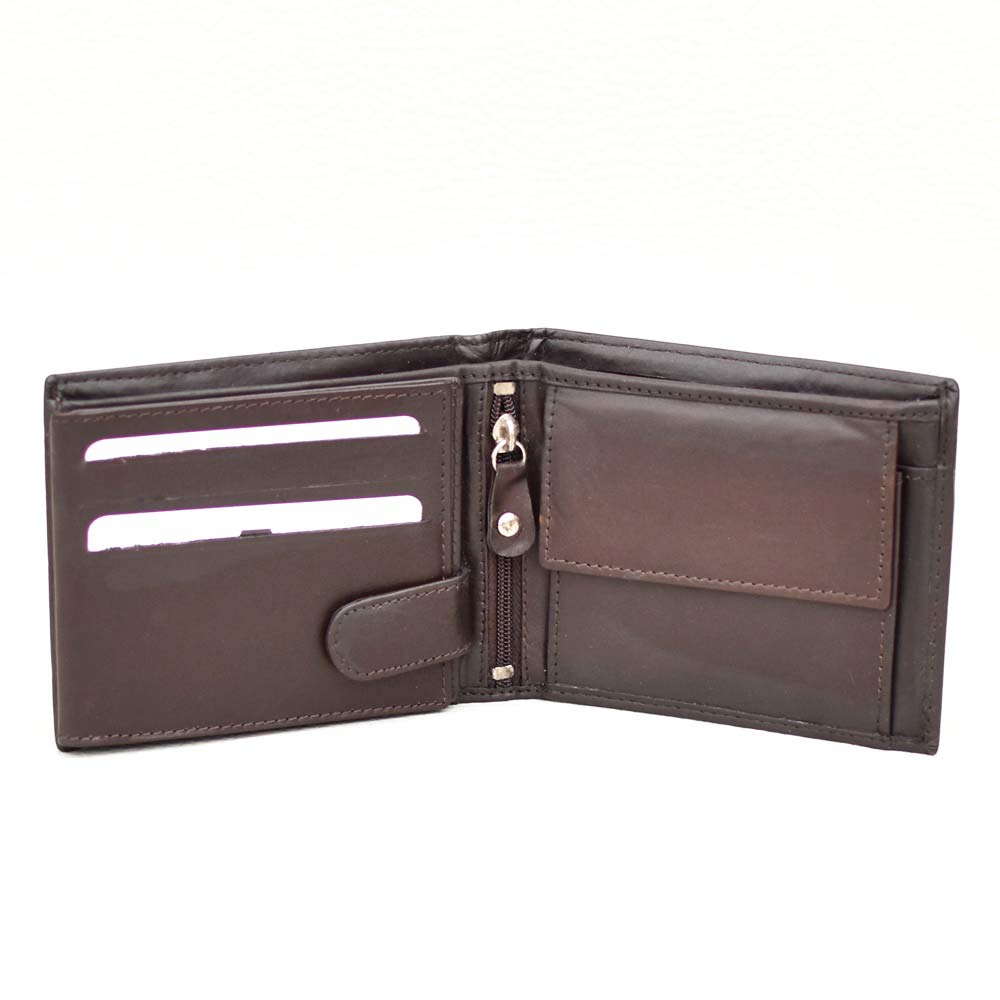 Мъжки портфейл от висококачествена  естествена кожа, хоризонтален, без закопчаване, вътрешен монетник, две отделения за банкноти, 11 отделения за карти, два джоба и вътрешен цип. Портмонето ще получите в луксозна кутия, подходяща за подарък.