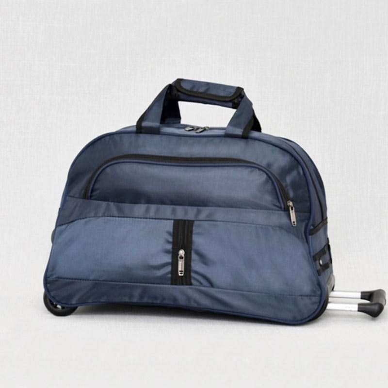 Пътна чанта от здрав водоустойчив плат, с две колела, теглич, две дръжки за ръка и две крачета. Сакът с колелца е с едно основно отделение, два предни джоба с цип.
