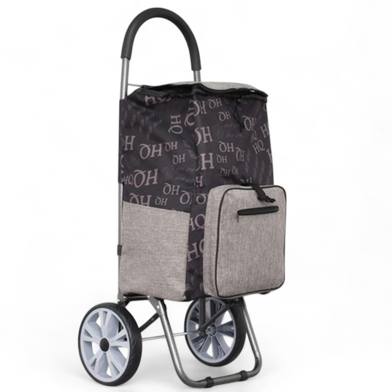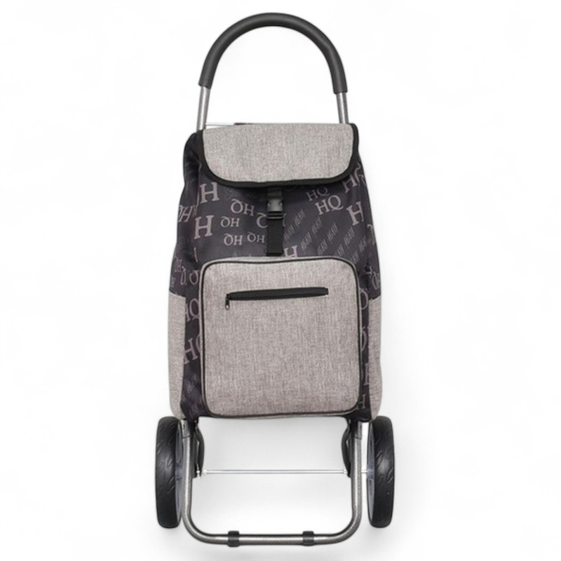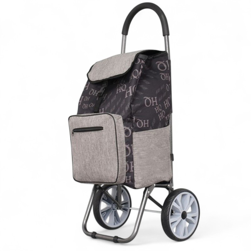Пазарска количка от здрав водонепропусклив плат с метална сгъваема рамка, две големи колела с лагер. Пазарарската количка е с ергономична дръжка, преден джоб с цип и два странични джоба.