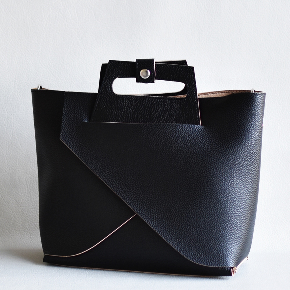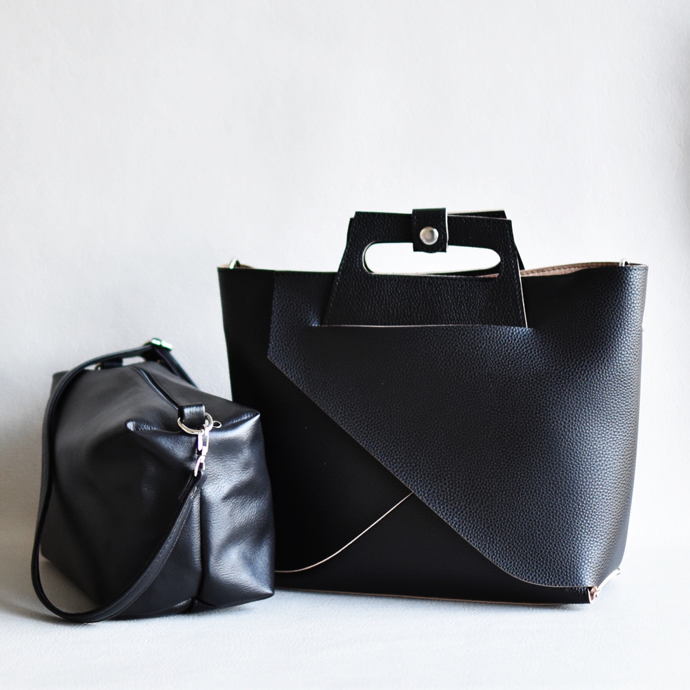 Българска дамска чанта 2 в 1 с органайзер от еко кожа черна
