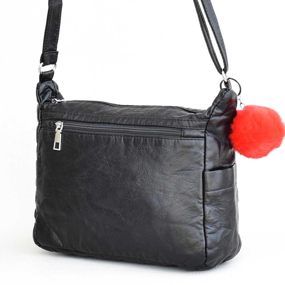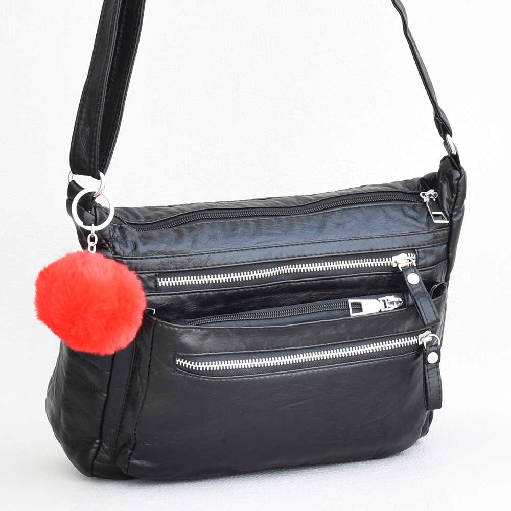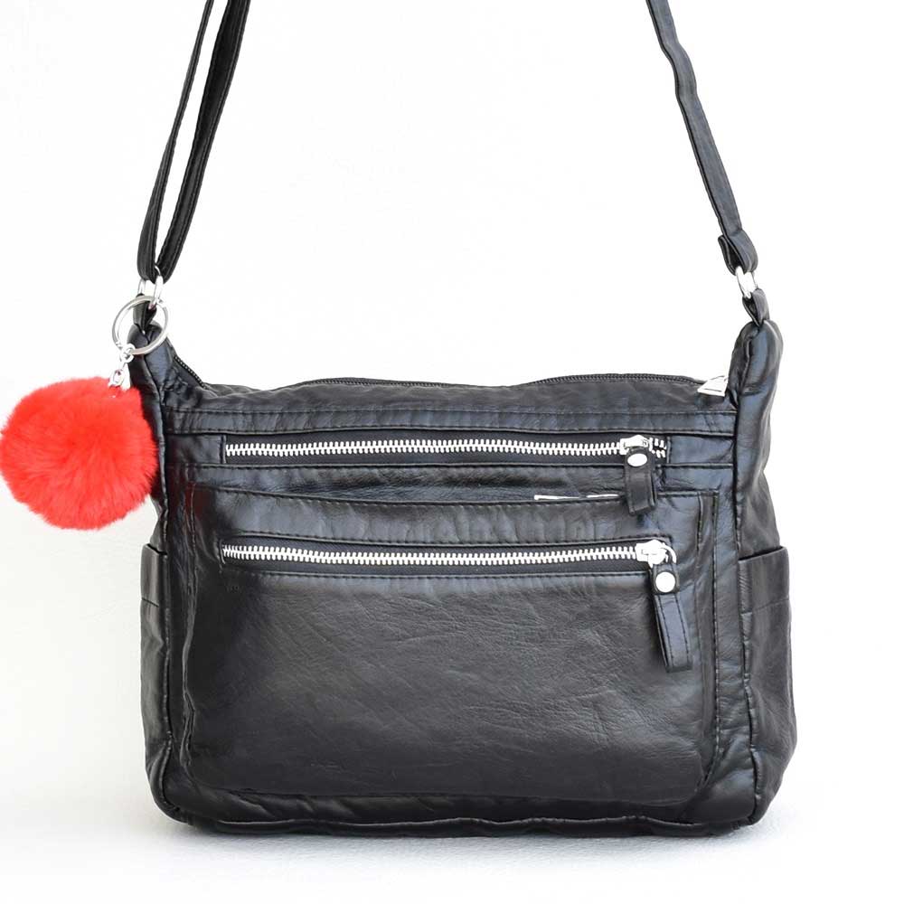 Евтина дамска чанта за през рамо от мека варена еко кожа, с много отделения + ПОДАРЪК висулка