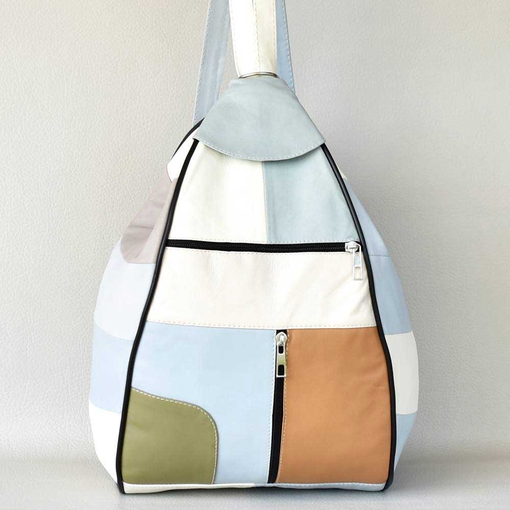 Дамска раница-чанта от естествена кожа с външни джобчета, летни пастелни цветове
