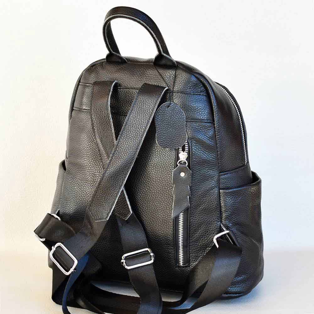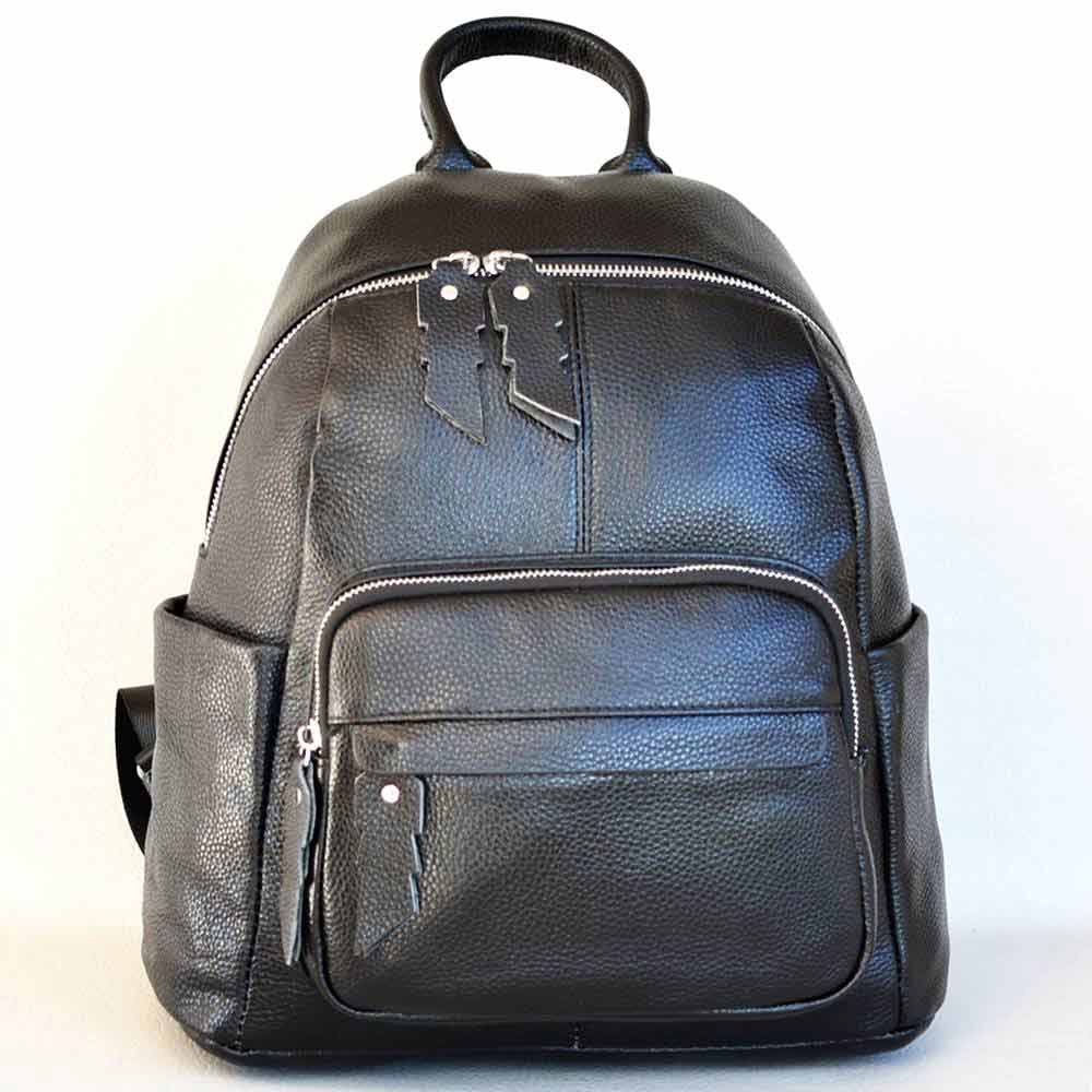 Дамска раница-чанта от естествена телешка кожа, едно основно отделение с практично вътрешно разпределение, два предни и един заден джоб с цип, два странични джоба. Дамската раница е с удобна дръжка за носене в ръка, дръжка за носене под мишница и регулиращи се презрамки за носене на гръб.