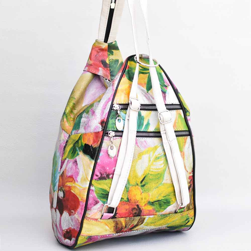 Дамска раница-чанта Цветя от естествена кожа 2в1, с много външни джобчета Код H402080