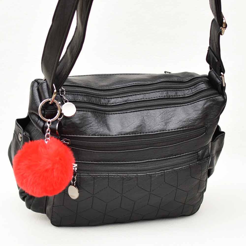 Удобна всекидневна дамска чанта от висококачествена еко кожа с две основни отделения, затварящи се с цип, едното с вътрешен джоб с цип, другото с две отделения за телефон, два предни и един заден джоб с цип, две странични джобчета с магнитни копчета. Висулка - цвят на късмет.