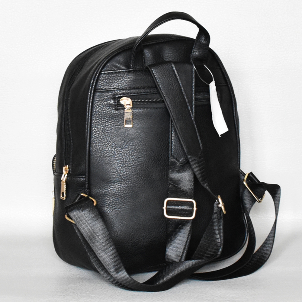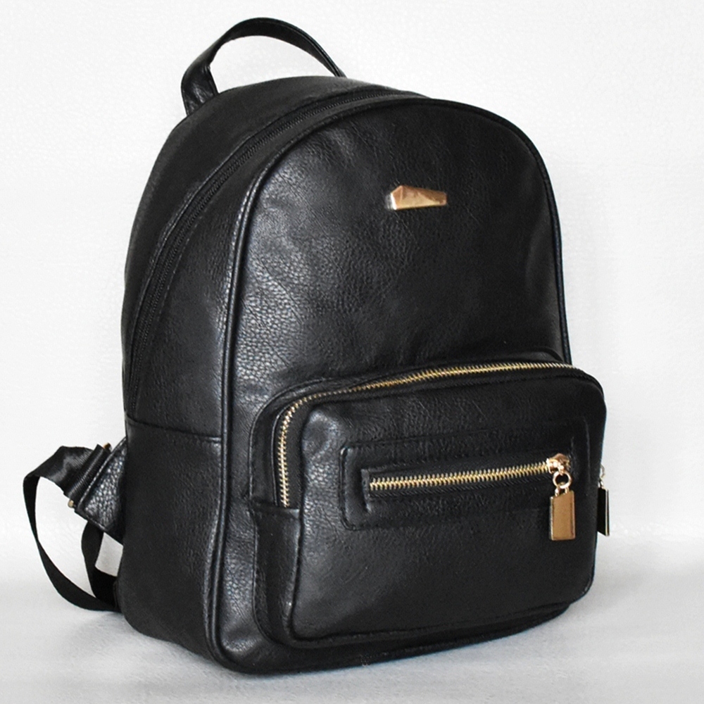 Дамска раница от еко кожа, класически дизайн, със златен обков.