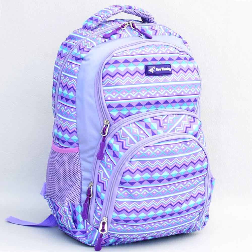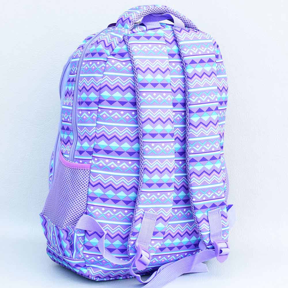 Стилна функционална раница за училище Етно с две големи отделения с цип, два предни джоба с цип, два странични джоба за вода, удобни широки подплатени презрамки с функция за регулиране, къса дръжка за носене в ръка, подплатен гръб. Материал - 100% полиестер.
