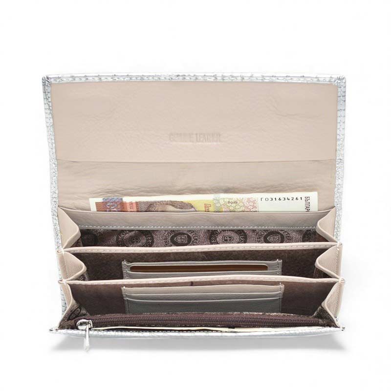 Дамско портмоне от естествена кожа лачено с кроко ефект сребърно Код L-406-1-4